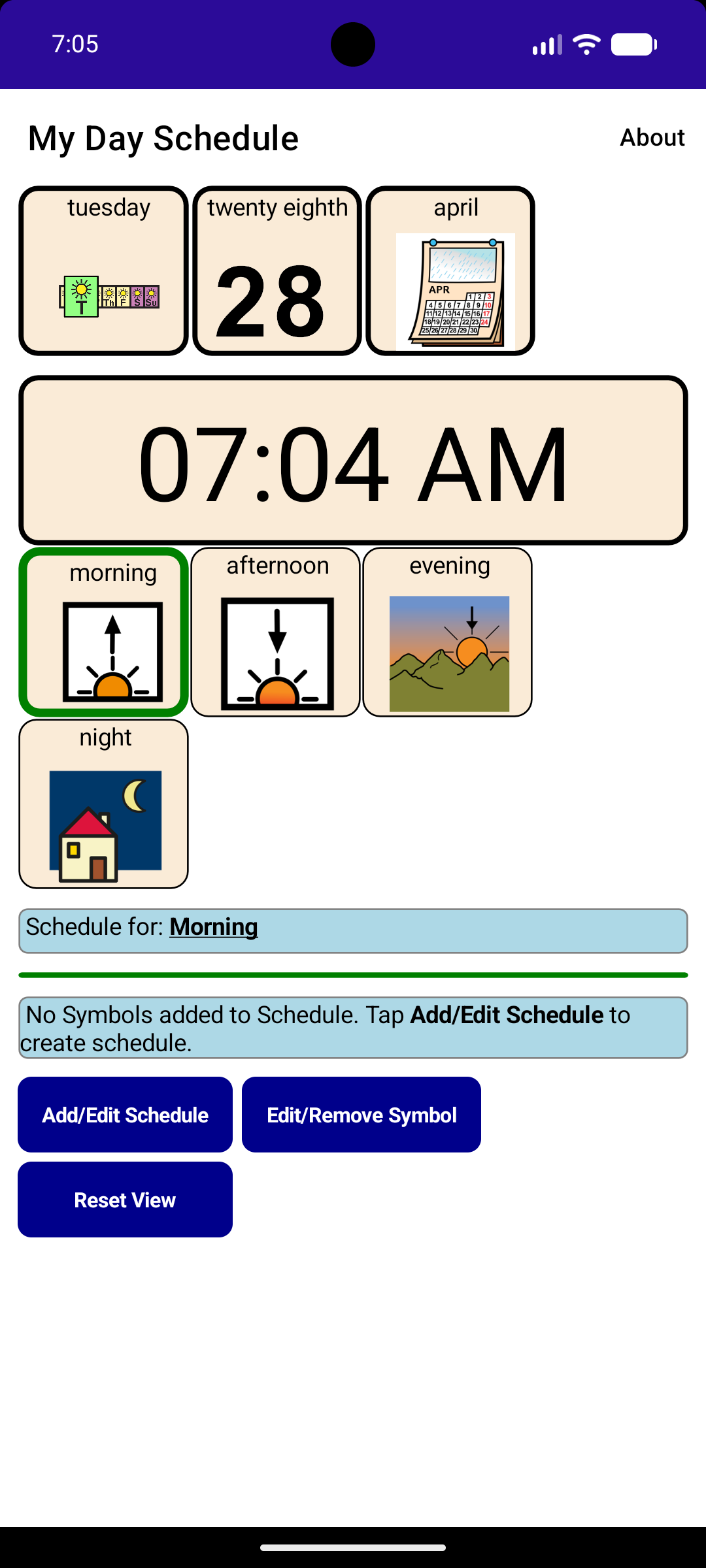 MyDay-AAC is a free app that helps care givers to set up schedules for participants who could be non-verbal, neurodivergent, helping them in understanding the concept of time during the day.